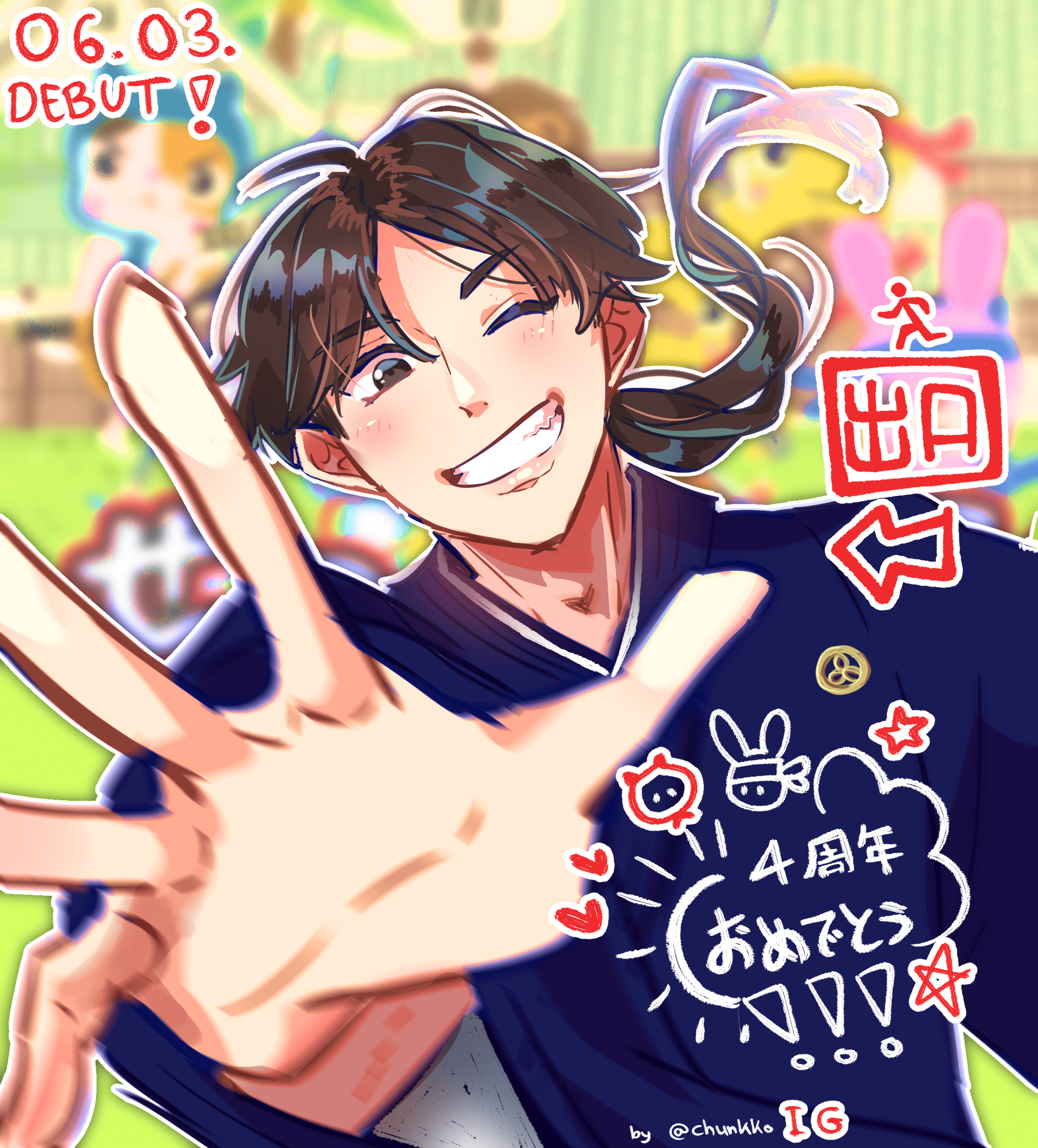 Hier habe ich Takashi Deguchi im Kostüm von "Animal Samurai" zu seinem vierjährigen Debut gezeichnet. Takashi Deguchi ist ein japanischer Musiker, der hauptsächlich Kinderlieder veröffentlicht. Ich habe mich sehr gefreut darüber, dass er sich persönlich für die Illustration auf Twitter bedankte. Besonders gefallen mir die Lichtblicke in den Haaren sowie die Farben im Hintergrund und das "Graffiti".
